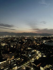 福岡タワーに着いたのは夕暮れ時で、夜景を堪能できました。